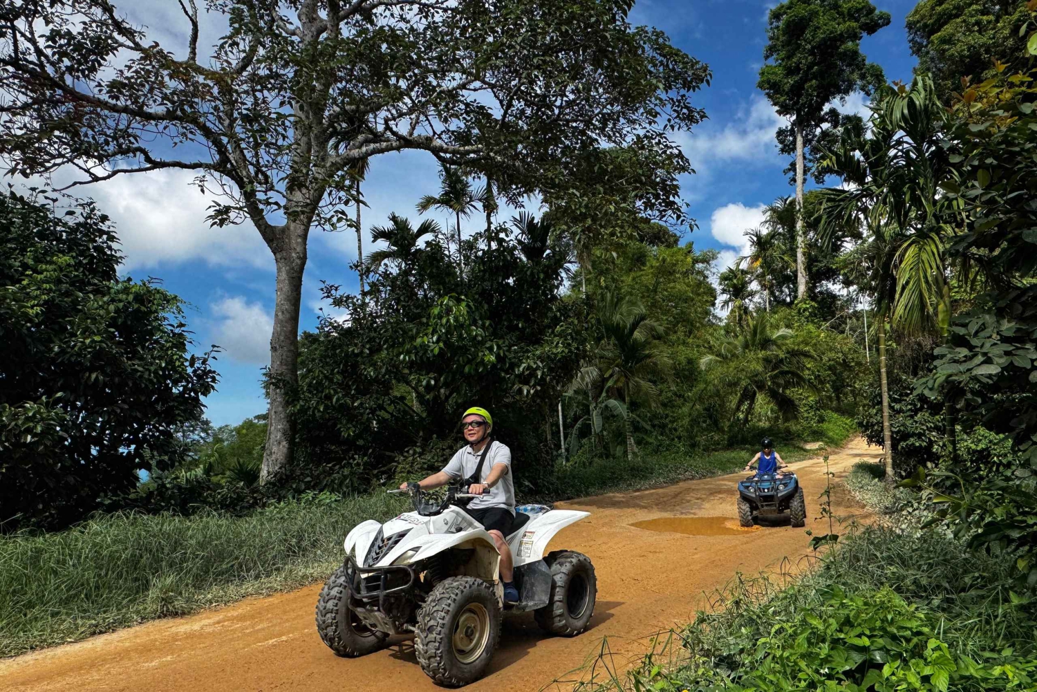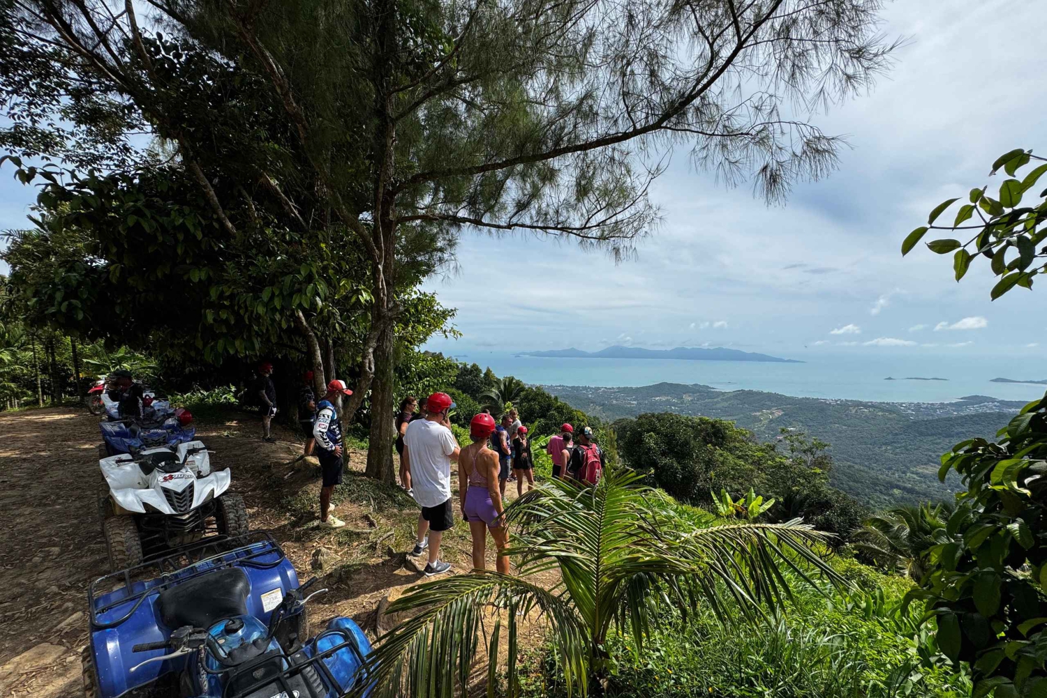 Fahre dein eigenes Quad (Yamaha 350-450ccm Automatik) auf Samuis Berg. Von der Abholung bis zur Rückgabe sind es etwa 2 Stunden Fahrt. Folge deinem Guide auf abgelegenen Feldwegen und entdecke die Insel auf eine andere Art, weitab der Touristenorte. Unser Team führt dich in die Quad-Fahrt ein, mit breiten Strecken durch die Durian-Plantagen und vielen verschiedenen Aussichtspunkten, um den geheimen Wasserfall zu erreichen. Entspanne dich und mach dort ein paar schöne Fotos, bevor du zum Basislager zurückkehrst, wo wir dir Erfrischungsgetränke und saisonales Obst anbieten. Das ist eine ausgezeichnete Möglichkeit, die Natur von Samui zu entdecken.Includes