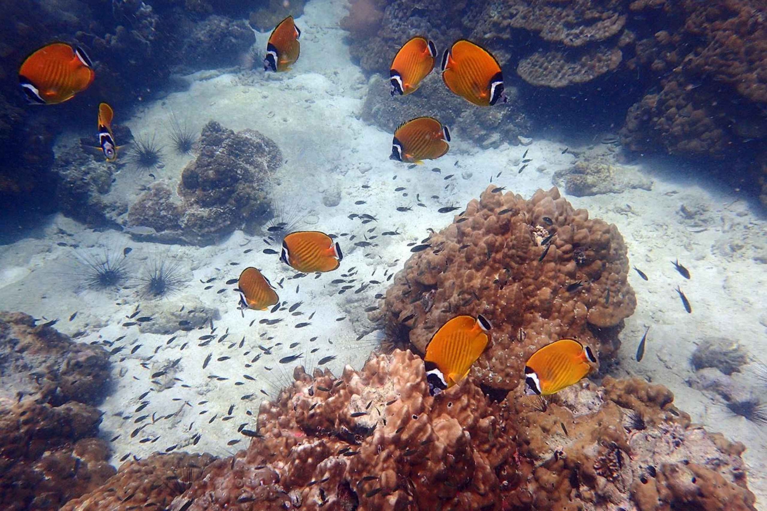 Snorkeling: Venture out of the park to the Ko Wao`s coral reef, teeming with friendly tropical fish. As the only non-speedboat vessel to reach this destination, we can select the optimal site. Non-swimmers are welcome to join our Aquaglide Lounge, gliding above the reef, ensuring everyone can enjoy the adventure carefree.