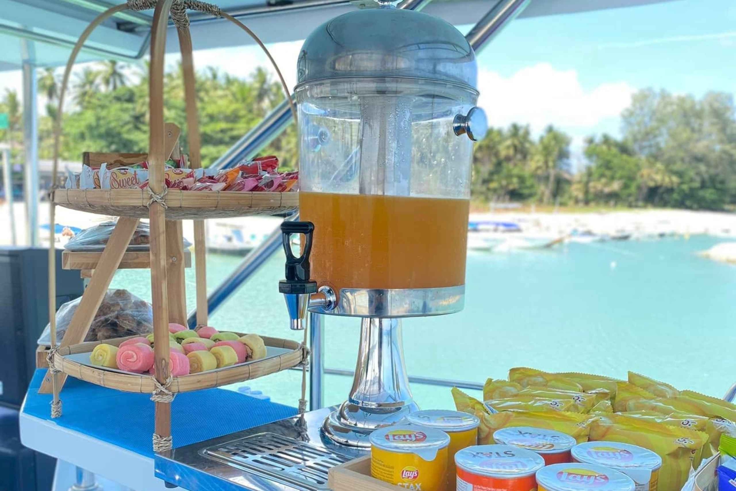 - Enjoy a light meal on board the catamaran as you cruise the waters