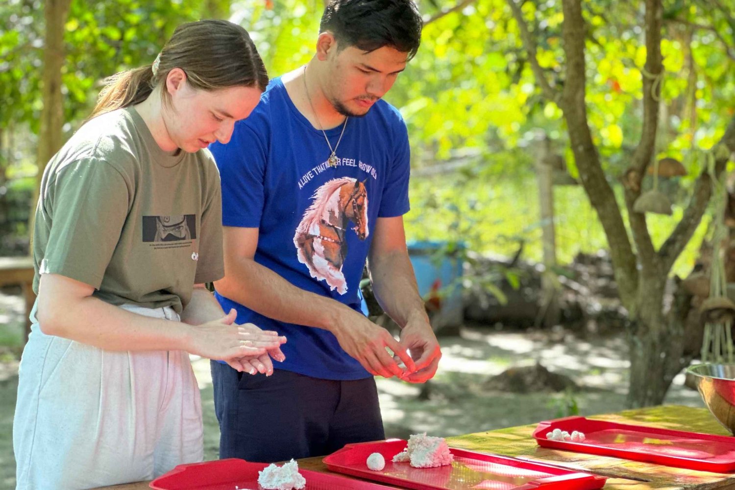 - サムイゾウの家保育園を訪問し、ゾウの餌となる栄養補助食品を作ります