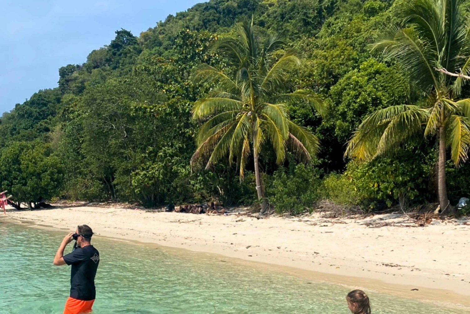 Set off on a full-day speedboat trip to the secret islands in the south of Koh Samui. Enjoy an exceptional experience with a very small group of up to 12 people. Discover secluded islands far away from mass tourism, perfect for those seeking special experiences away from crowded places. Visit the popular island of Koh Madsum, known as Pig Island, in the afternoon when the crowds have left, ensuring a VIP experience. Make multiple stops at different islands, including Koh Tan, where you can hike to a mountain top with a stunning white Buddha and enjoy a panoramic view over Koh Samui, the Five Islands, the mainland, and other small islands. Stop at Koh Rap, an uninhabited island accessible to only a few people. Enjoy a BBQ lunch and several stops for snorkeling. End the trip with a cruise to the Five Islands, where you can watch the sunset.Includes