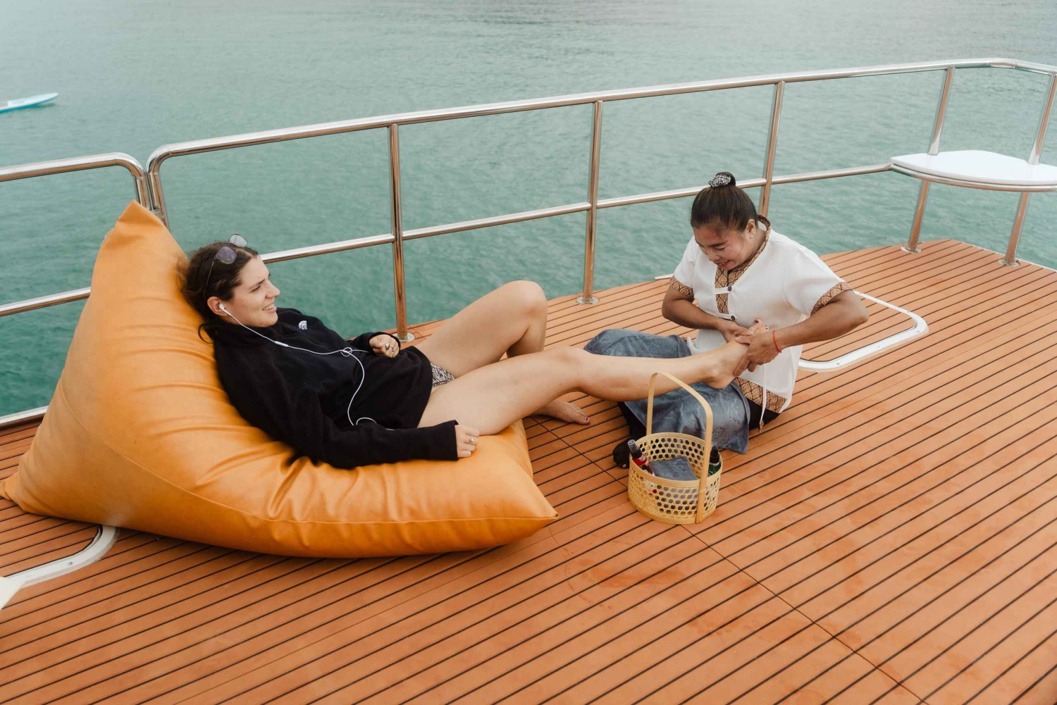 Toilet aan boord Thaise massageservice Snorkeluitrusting Bananenboottochten Paddleboards en kajaks Een heerlijke Thaise lunch Gratis drankjes Gelicentieerde kapitein Professionele cruisebemanning Professionele Engelssprekende gidsen Retourtransfer van en naar je hotel Uitgebreide reisverzekeringImportant Information
