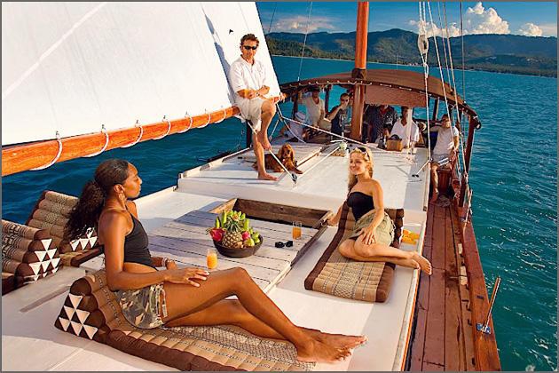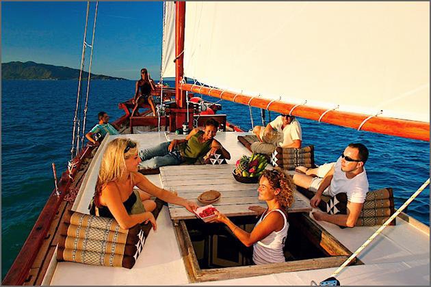 Blending natural beauty and relaxed luxury aboard Kaïsso Kaïa for an exhilarating and mellow experience, which will satisfy the adventurous and the laid-back. Eating a delicious Thai lunch, snorkelling, swimming or relaxing, the skipper sets sails and you already know that this will be a day to remember.