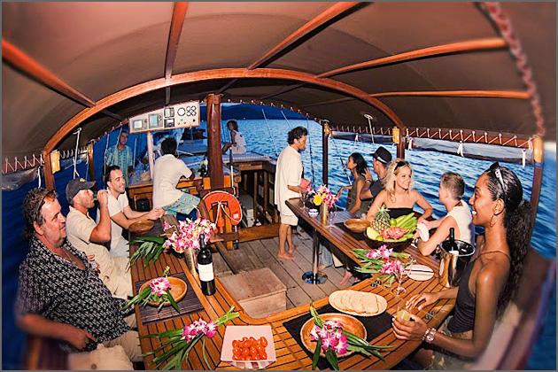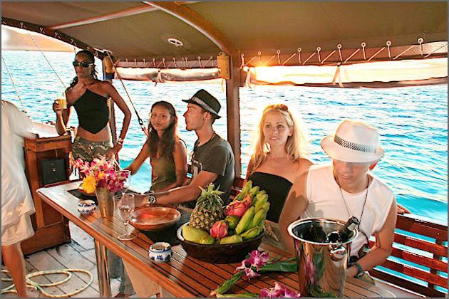 5.00 pm: Welcome aboard! Enjoy a spectacular sunset behind the islands of Angthong, listen to your favorite tunes and refresh yourself with our exotic cocktails and snacks.
